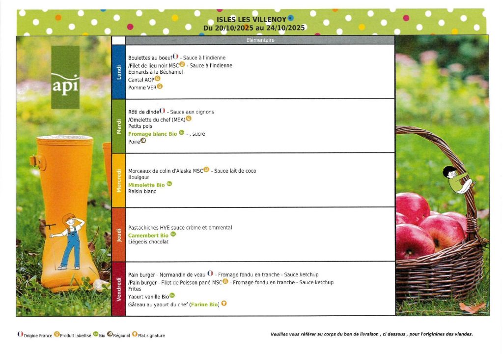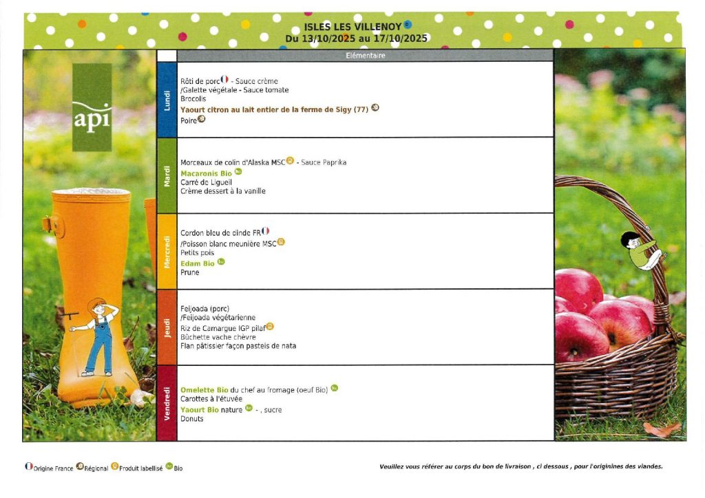 Menu cantine